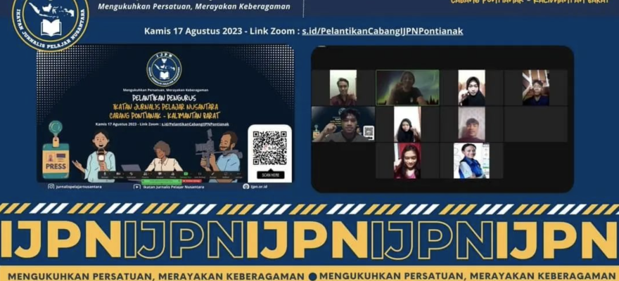 PP. IJPN – Bertepatan dengan HUT Republik Indonesia Ke 78 Tahun yang jatuh Pada tanggal 17 Agustus 2023. Penggurus Pusat IJPN (Ikatan Jurnalis Pelajar Nusantara) melantik Pengurus Cabang IJPN di Kota Pontianak secara daring (via zoom). Prosesi pelantikan ini di …